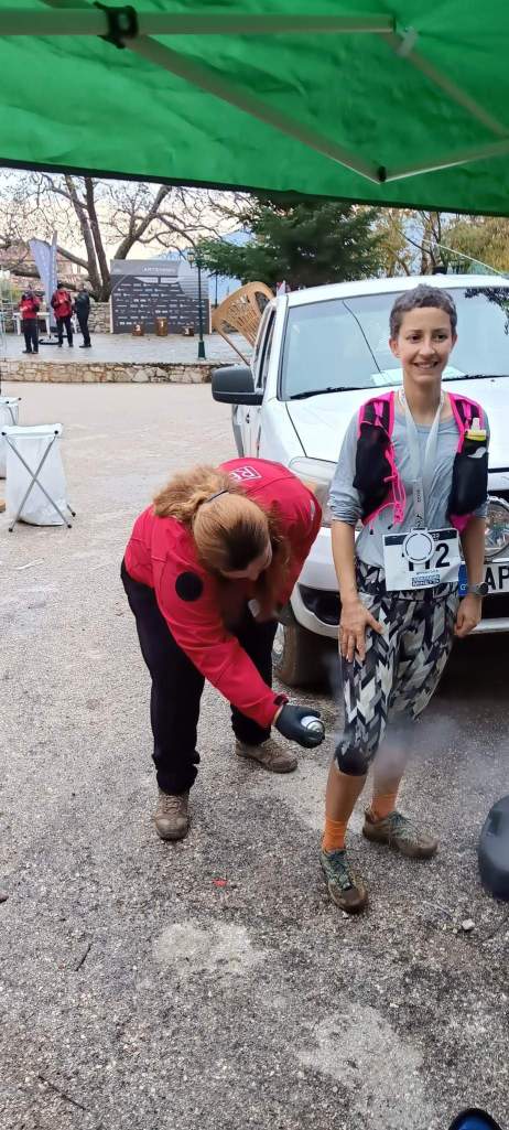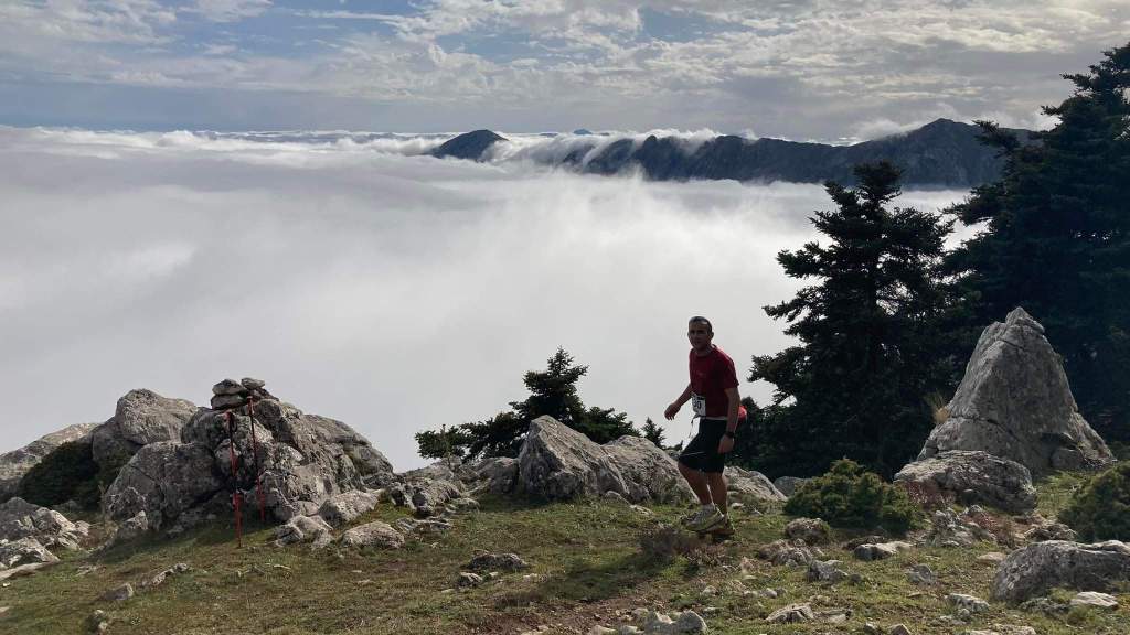 Η διαδρομή των 26km, μια διαδρομή με τεχνικά και εκτεθειμένα περάσματα, σωματικά επίπονη και εκτεθειμένη σε απότομες αλλαγές του καιρού στα ψηλότερα σημεία του βουνού. Μια διαδρομή που χρειάστηκε ιδιαίτερη προσοχή και αυτοσυγκέντρωση απ’ τους αθλητές και τους εθελοντές της ομάδας μας που βοήθησαν υπομονετικά τους δρομείς να πατούν σωστά και με ασφάλεια στα σημεία που είχαν μέρες πριν φιξάρει σχοινιά, προετοιμάζοντας και εξασφαλίζοντας το ασφαλές πέρασμα των δρομέων.