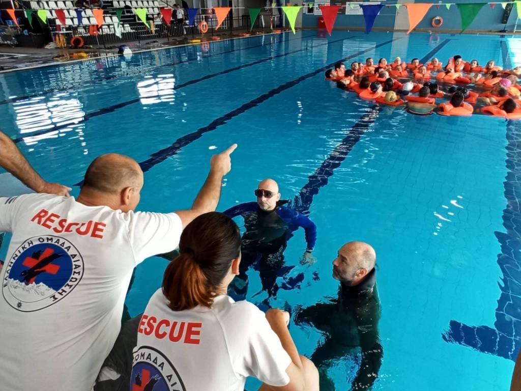 Οι περίπου 40 νέοι εθελοντές διασώστες παρακολούθησαν θεωρητική παρουσίαση και στη συνέχεια κλήθηκαν να εξασκήσουν τις δεξιότητες τους στην τεχνική διάσωσης σε πισίνα και θάλασσα και συγκεκριμένα σε: