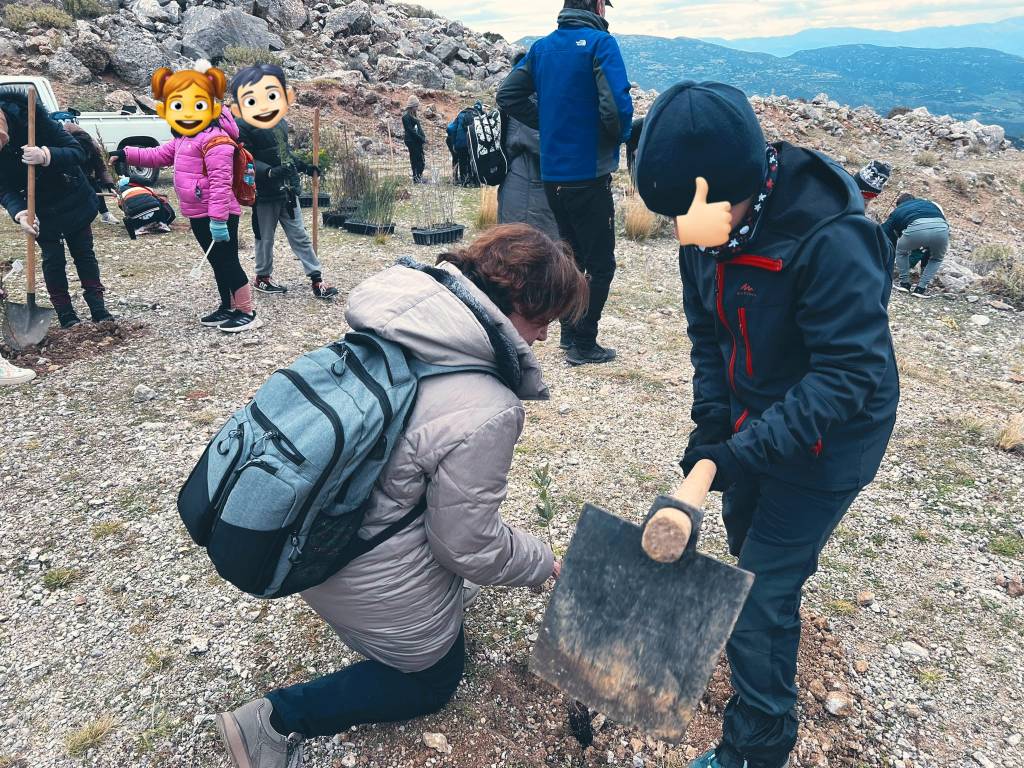 Πάνω από 450 νέα δενδρύλια φυτεύθηκαν από μικρούς και μεγάλους.