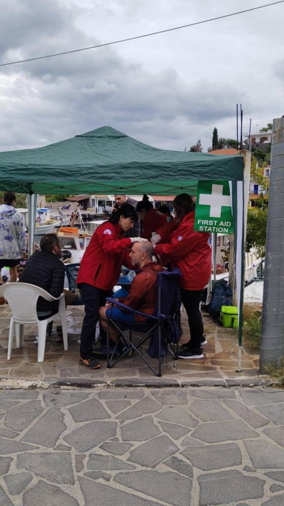 16 εκπαιδευμένοι και πιστοποιημένοι εθελοντές διασώστες ταξίδεψαν στα Μέθανα και παρείχαν τις πρώτες βοήθειες σε 6 πλήρως εξοπλισμένους (φαρμακεία) σταθμούς σε καίρια σημεία των δύο διαδρομών επεμβαίνοντας αμεσα και παρέχοντας κάθε δυνατή βοήθεια για κάθε περιστατικό.