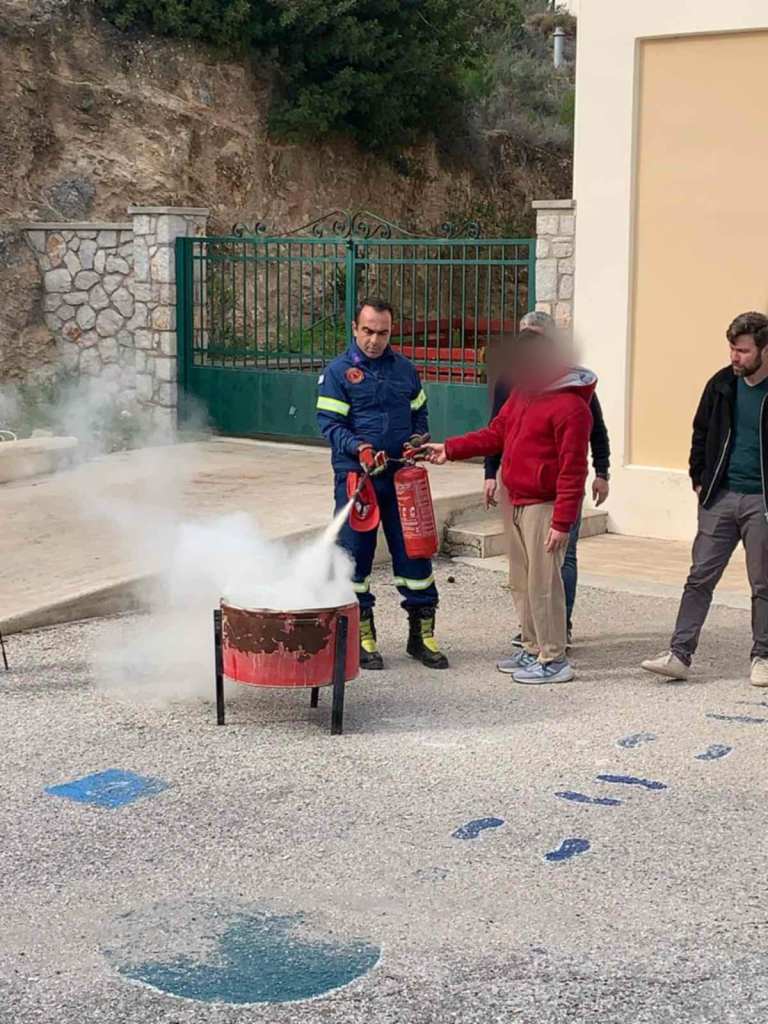 Στο τέλος, για περισσότερη εξοικείωση, έγινε χρήση πυροσβεστήρα από όλα τα παιδιά!