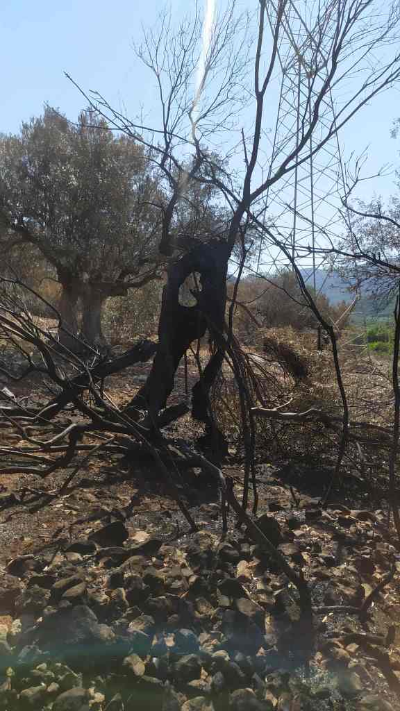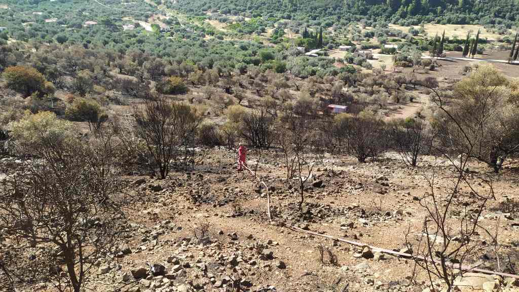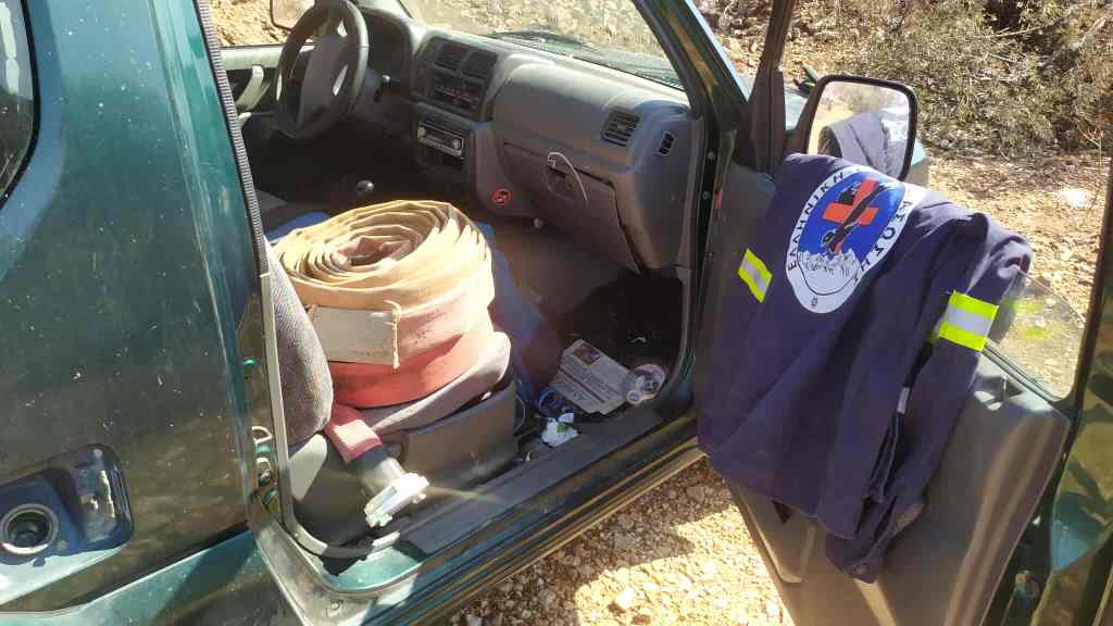 Τρεις Εθελοντές Διασώστες , βρέθηκαν στο σημείο, (καμένη έκταση περίπου 200 στρεμμάτων σε πλαγιά με ελαιόδεντρα) κοντά στην περιοχή των Ιρίων προκειμένου να βοηθήσουν τους πυροσβέστες στην συλλογή .