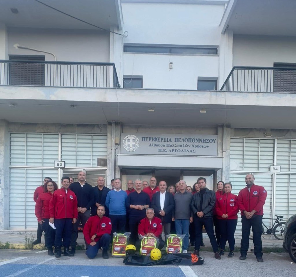 Την Πέμπτη 5 Νεομβρίου 2025 η ΕΛΛΗΝΙΚΗ ΟΜΑΔΑ ΔΙΑΣΩΣΗΣ ΠΑΡΑΡΤΗΜΑ ΑΡΓΟΛΙΔΑΣ ως ενταγμένο μέλος στο Μητρώο της Πολιτικής Προστασίας, στο Ειδικό Μητρώο Εθελοντικών Μη Κυβερνητικών Οργανώσεων καθώς και στο Εθνικό Μητρώο Φορέων Ιδιωτικού Τομέα μη κερδοσκοπικού χαρακτήρα, παρέλαβε με ιδιαίτερη χαρά και ικανοποίηση σύγχρονο διασωστικό εξοπλισμό, σχετικό με την Ορεινή Διάσωση και το Υγρό Στοιχείο, στην τελετή παράδοσης – παραλαβής η οποία πραγματοποιήθηκε στο χώρο της Περιφέρειας Αργολίδας με την παρουσία του Περιφερειάρχη Πελοποννήσου κ. Δημητρίου Πτωχού.